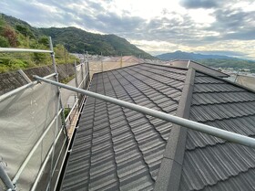 屋根につきましては、耐久性とデザイン性を兼ね備えたLIXILの「Tルーフ クラシックR(チャコール)」にて葺き替え工事を行わせていただきました。