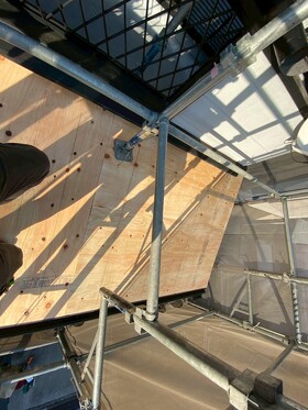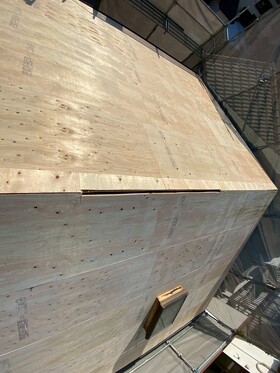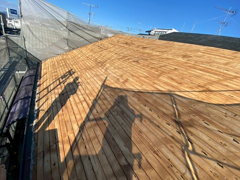既存の下地の上から新たに構造用合板を重ねて貼ることで、屋根全体の強度が向上し、安定した下地が確保されました。